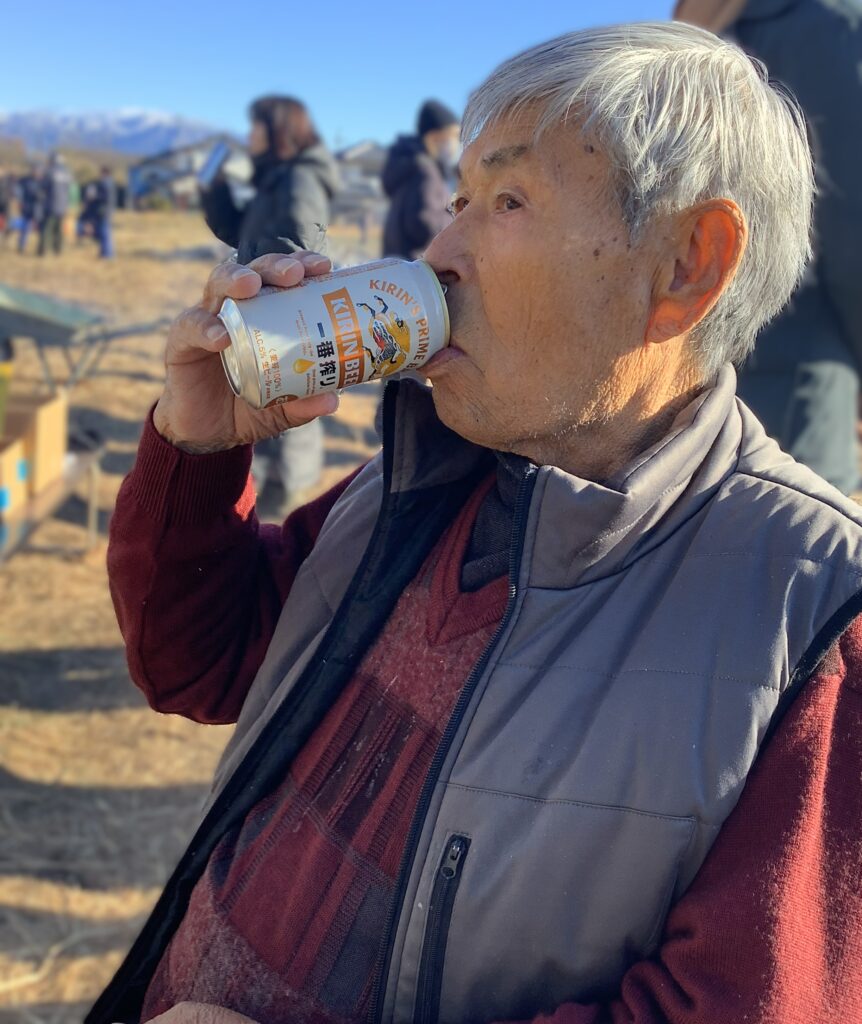 用意されていたビールに気づいた利用者さんは「ビールが飲みたいなぁ」と笑顔に。