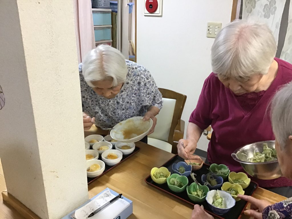 みんなでやれば早くできます。(グループホームブログ) 2020年9月24日 グループホーム、認知症デイ ブログ 昼食の盛り付け。みんなでやれば早くできます。 タグ : お客ではなく疑似家族, もう一つの家, グループホーム共用型デイサービス, 居場所と役割, 熟練, 認知症対応型共同生活介護, 集中 「夫婦幸せな時間(定期巡回ブログ)」 「ホームで繋がる家族の絆(グループホームブログ)」