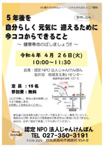 - 場 所 金井淵 地域支え合いセンター (高崎市金井淵町137-5)