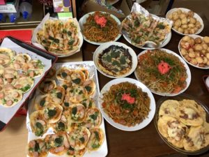 リクエストの多かった焼きそば、お好み焼き、たこ焼き、ミニピザを作りました。