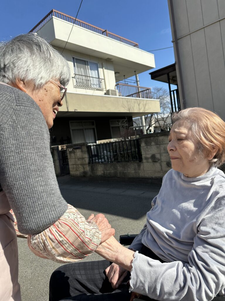 「あら!ひさしぶり!〇〇さん?げんき?わからなくなっちゃったかな?」と、目に涙を溜めて笑顔で握手。