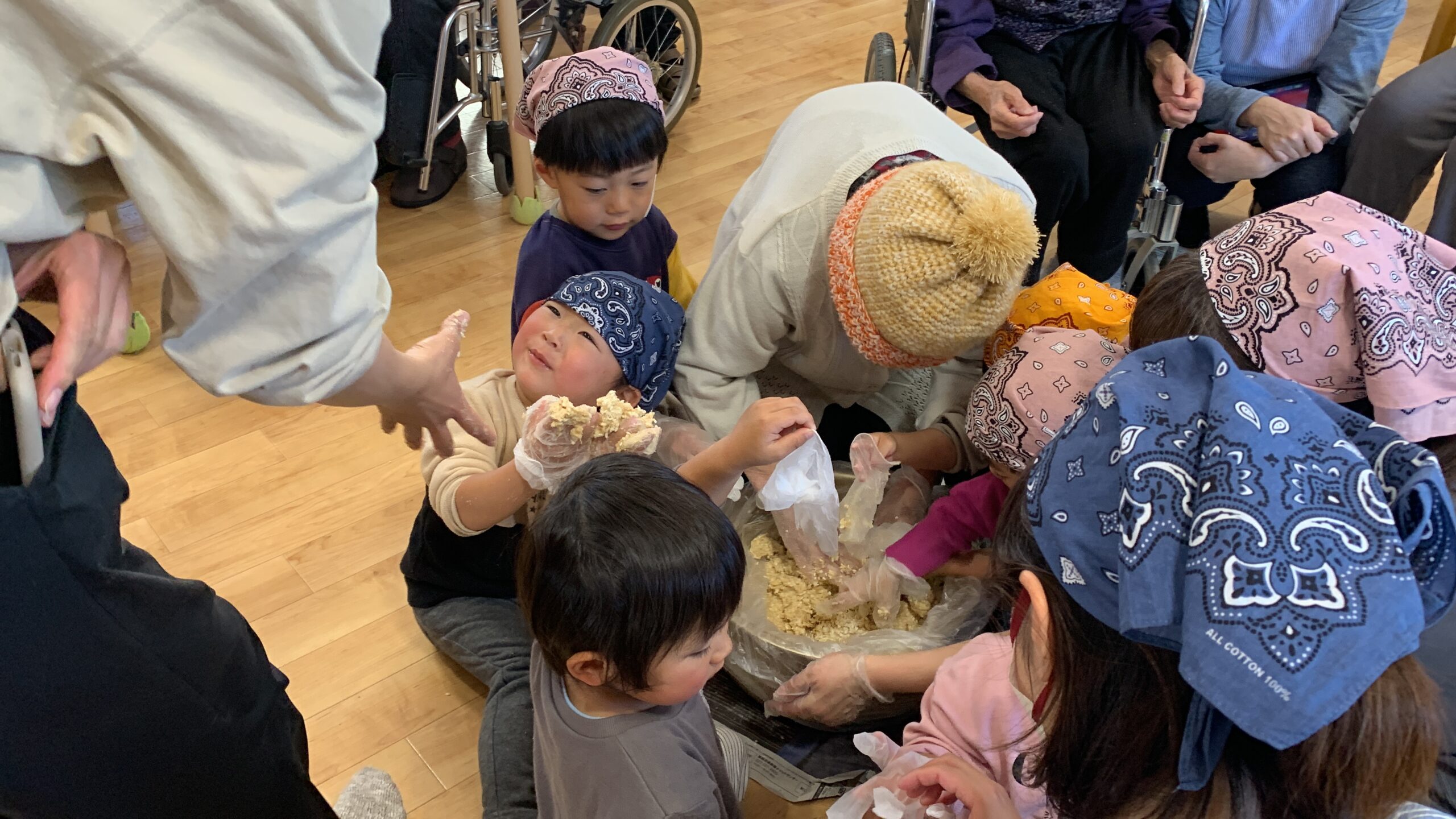 保育園の子供達と一緒に手作り味噌作りを行いました。