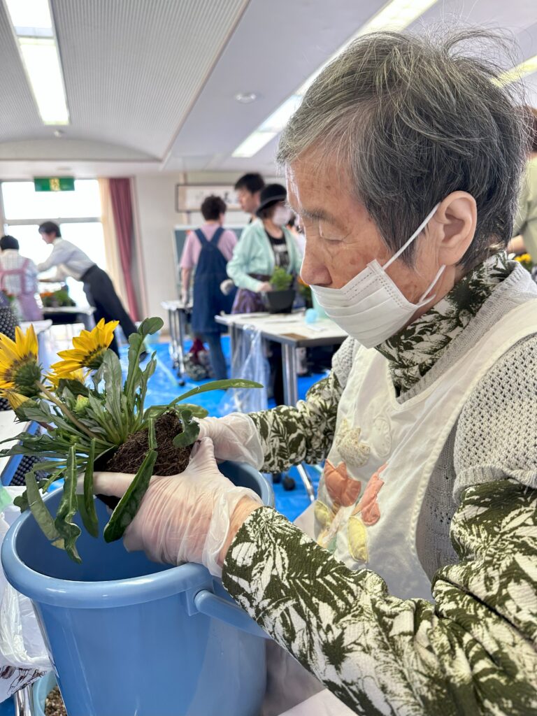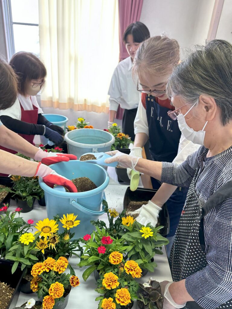 地域住民の方々、ファーム部の高校生たちと寄植えは、地域交流、多世代交流、参加された当グループホームの利用者様方にとって、たくさんの笑顔あふれる体験交流の思い出となりました。