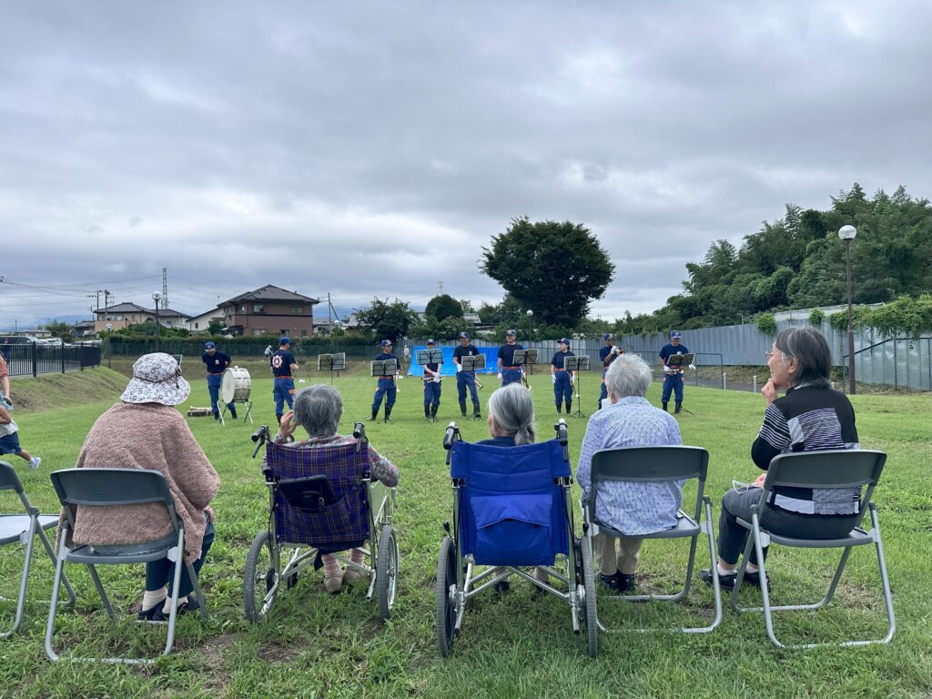 防災の日(9/1)群馬町消防団大会(グループホーム あいあいえす) 公開日 : 2024年9月3日 / 更新日 : 2024年9月27日 グループホーム、認知症デイ ブログ 群馬総合運動場で防災の日(9/1)に【群馬町消防団大会】が行われており、見学に伺うことに。隊員の方々がすぐに椅子を用意して下さり、一番前の席でラッパ隊の演奏を聴かせていただきました。皆様ありがとうございました。 タグ : あいあいえす, ラッパ隊, 地域交流, 群馬町, 群馬町消防団, 群馬県, 防災の日, 高崎市 「味噌開封!そして味噌料理!(グループホーム あいあいえす)」 「カフェ通信 9月号」