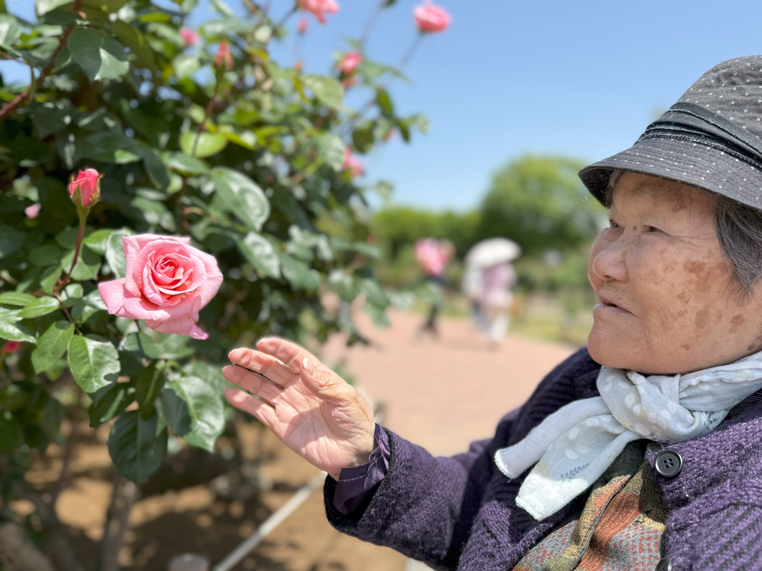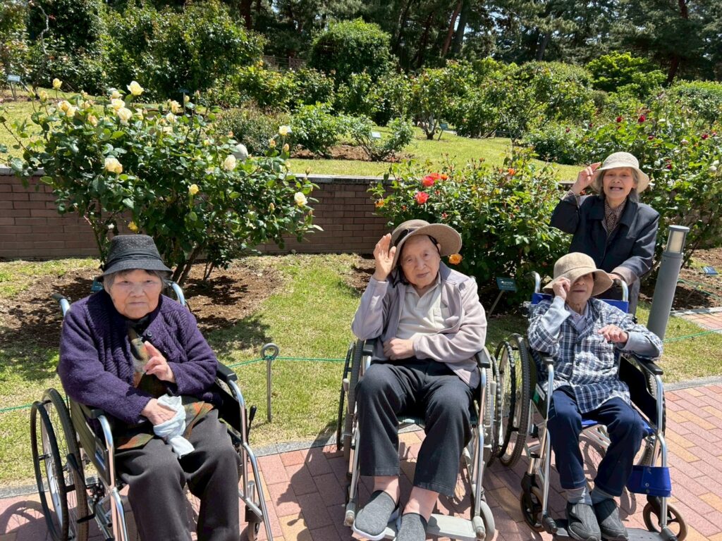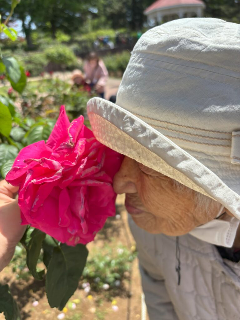 前橋のバラ園まで、ホームの皆さんとお出かけをしました。一輪一輪をゆっくりとみることができました。「いいにおいがするね」とお花を近づけ、見るだけでなく香りも楽しまれておりました。春の良い日に良い気分転換が出来ました。