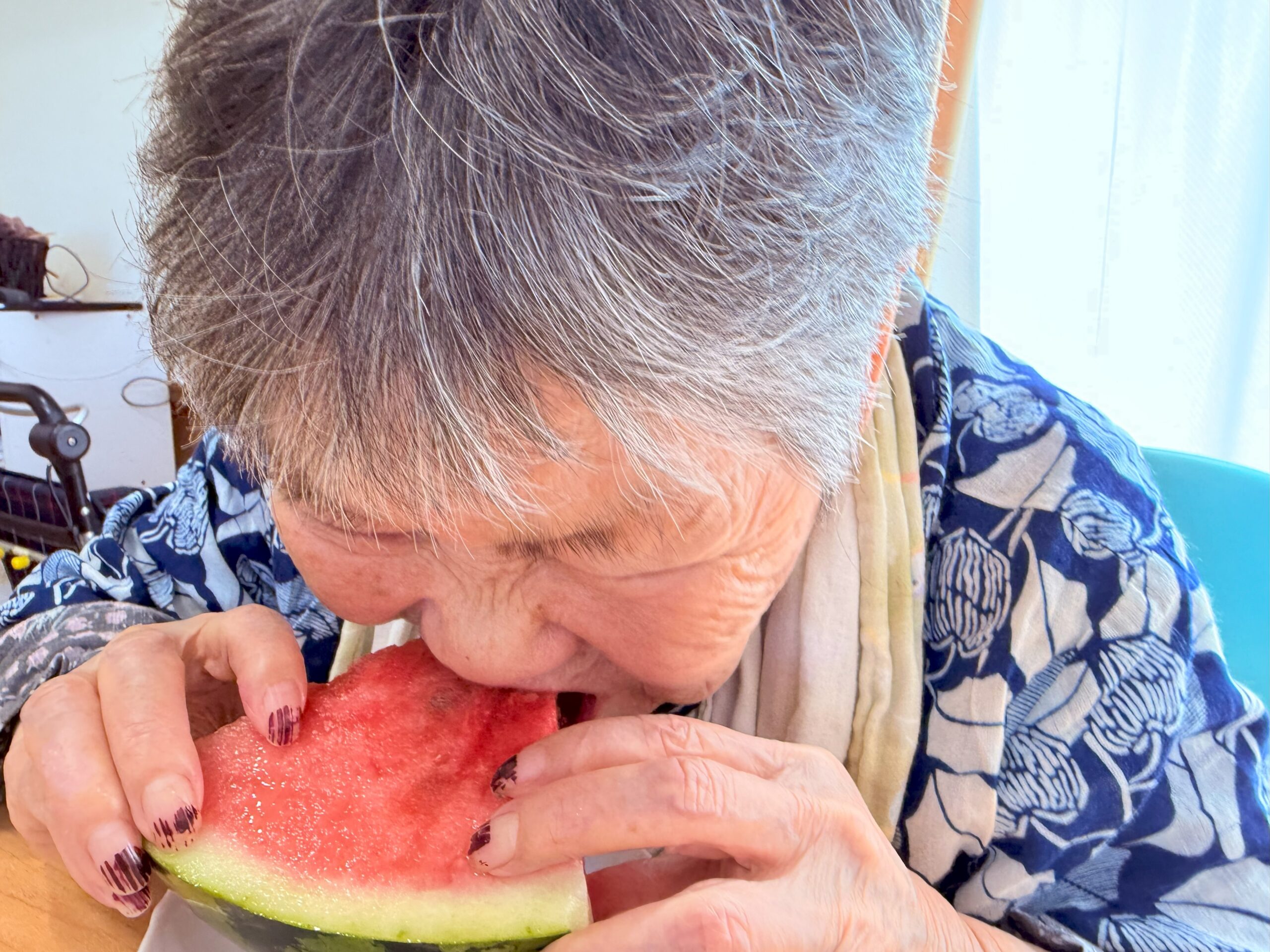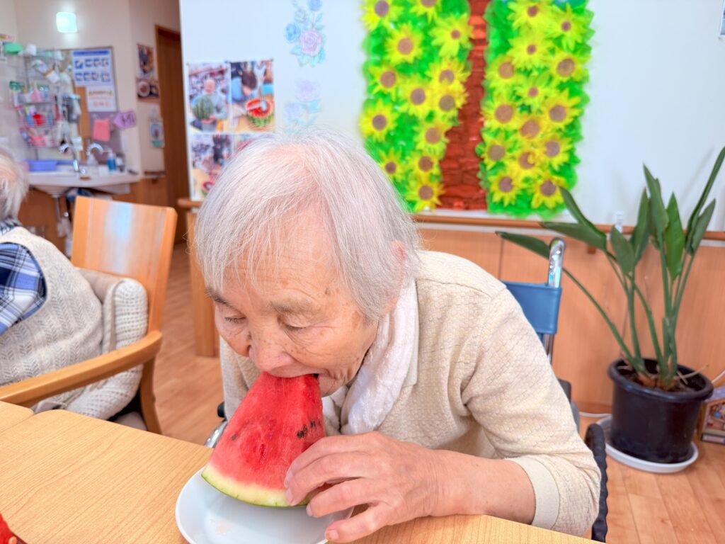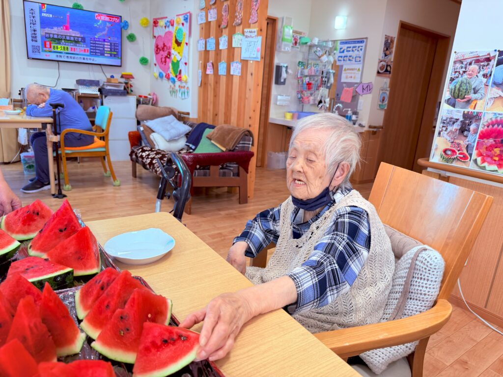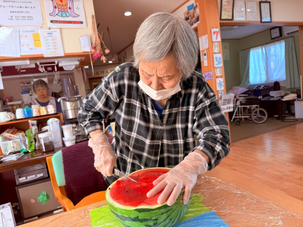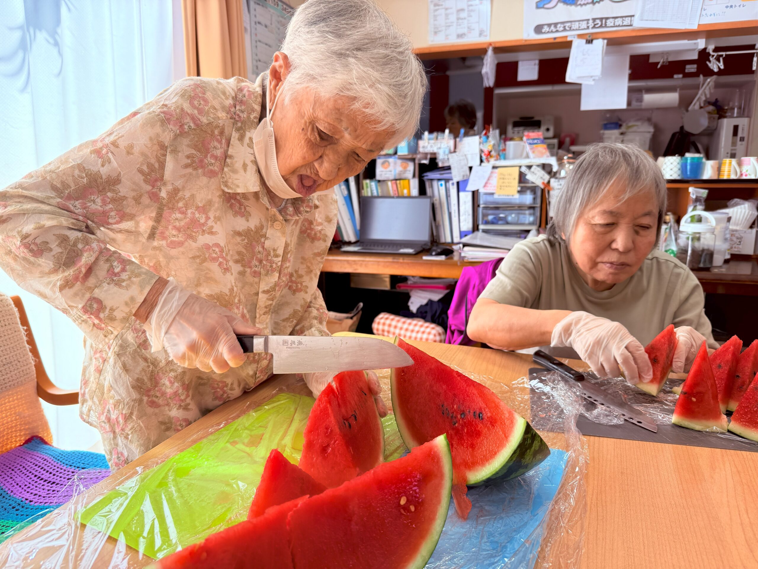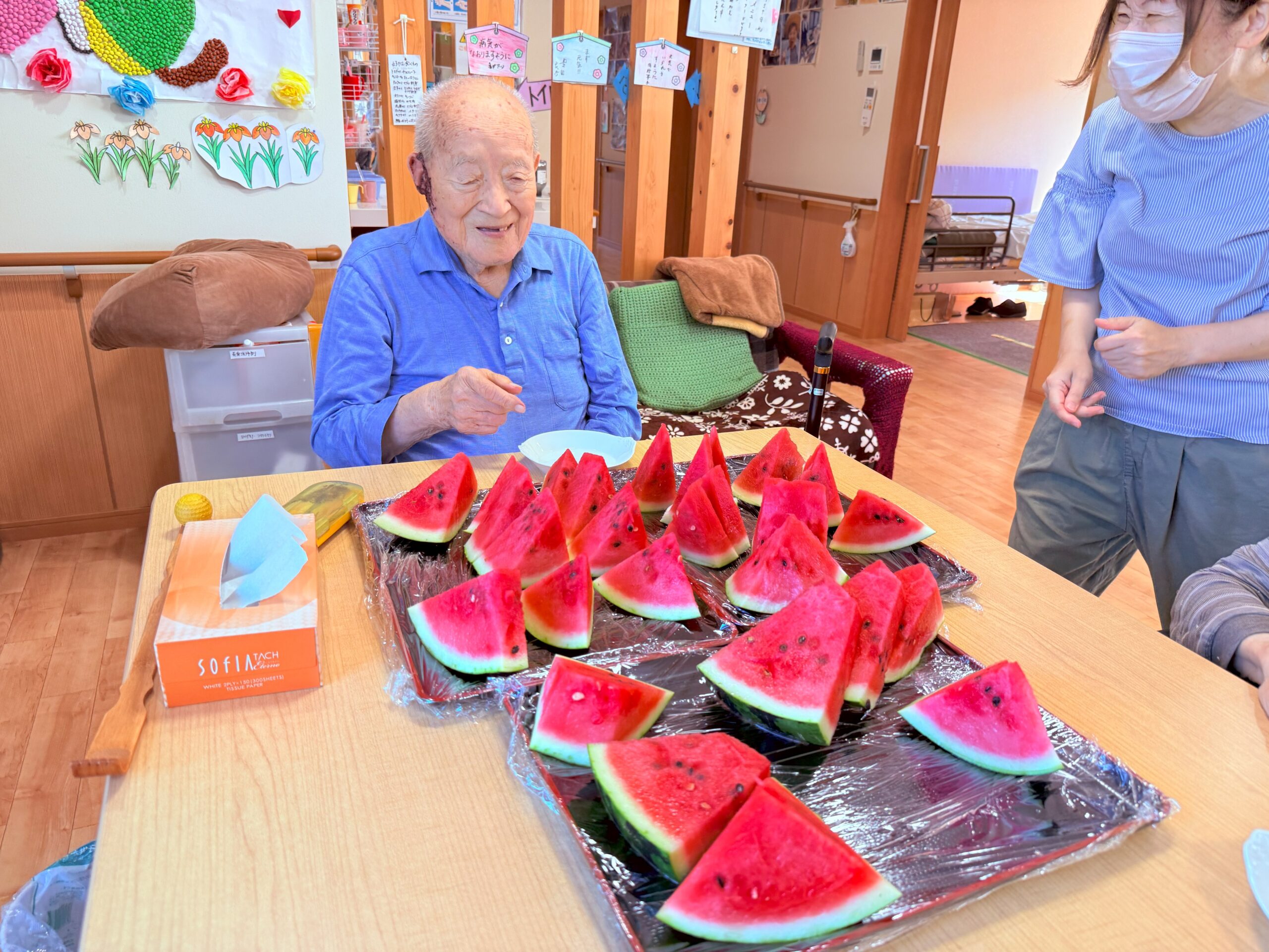 夏の代表格(グループホーム あいあいえす) 公開日 : 2025年8月15日 / 更新日 : 2025年8月12日 グループホーム、認知症デイ ブログ スイカを近所の方と職員から頂きました!どちらも鮮やかで果汁たっぷり♪ あいあいえす婦人会にてスイカを思い切り力を入れて真っ二つに!そこからお馴染みの形に太めに切り分けられ、好きなスイカを選んでいただきました。「大きいね!」「こんなに赤いんかい?」と悩みながらみなさん選ばれていました。選んだ方からパクリ! 美味しいスイカをありがとうございました♪ タグ : グループホーム, スイカ, 夏, 群馬, 高崎 「父と暮らせば(地域支え合いセンター)」 「観音寺いきいきサロン(近隣大家族)」