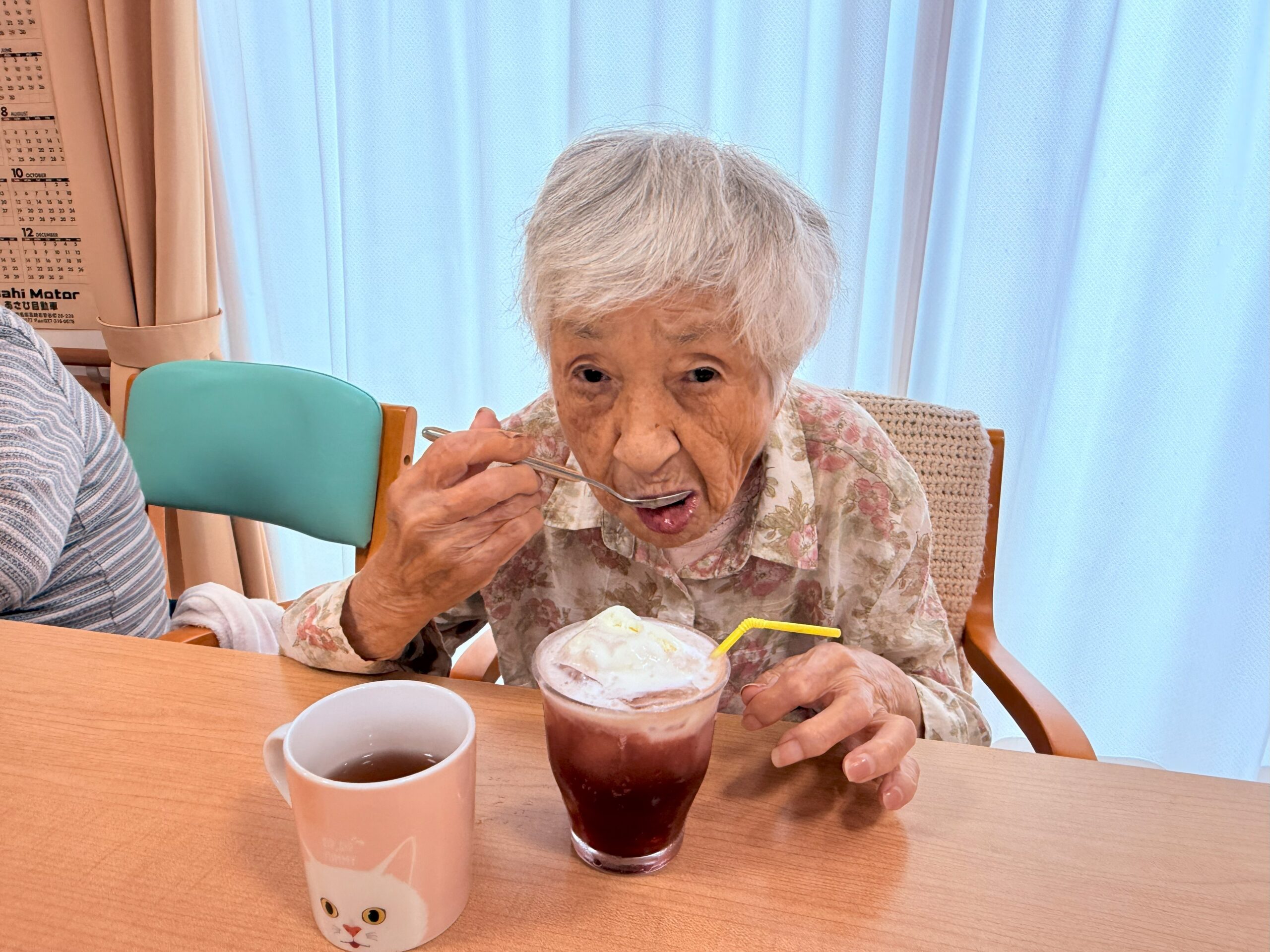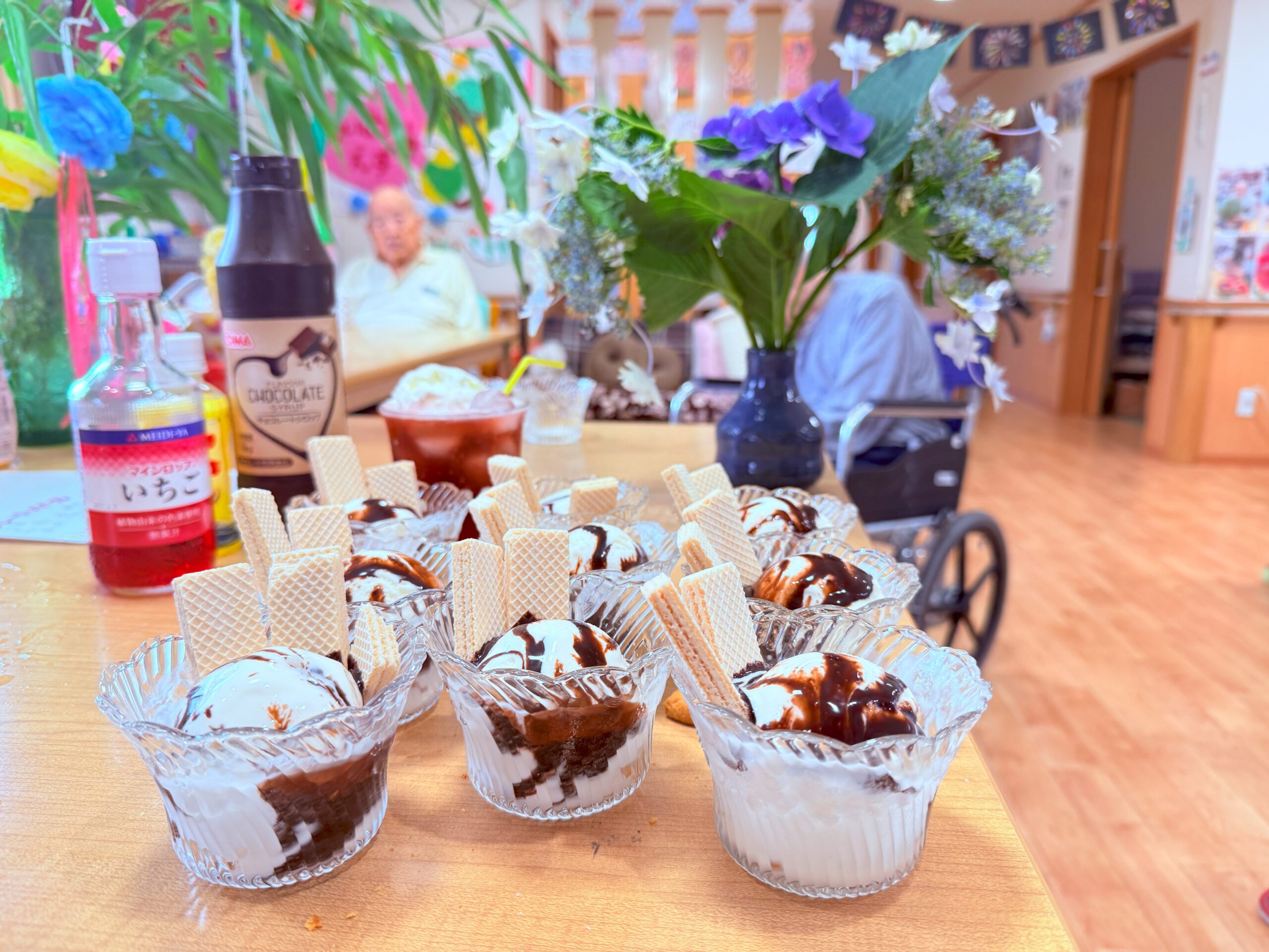 喫茶あいあい(グループホーム あいあいえす) 2025年9月5日 グループホーム、認知症デイ ブログ おやつの時間に喫茶あいあいを開店♪お好きなメニューを選び、注文。スタッフがお届けします!メロンソーダやチョコレートパフェ、アイスクリームなどを選ばれ召し上がられました。チョコレートパフェが大人気です♪ タグ : おやつの時間, チョコレート, パフェ, 喫茶 「2025年度 実践発表会【発表順のお知らせ】」 「夏の一句(看護小規模多機能 金井淵)」