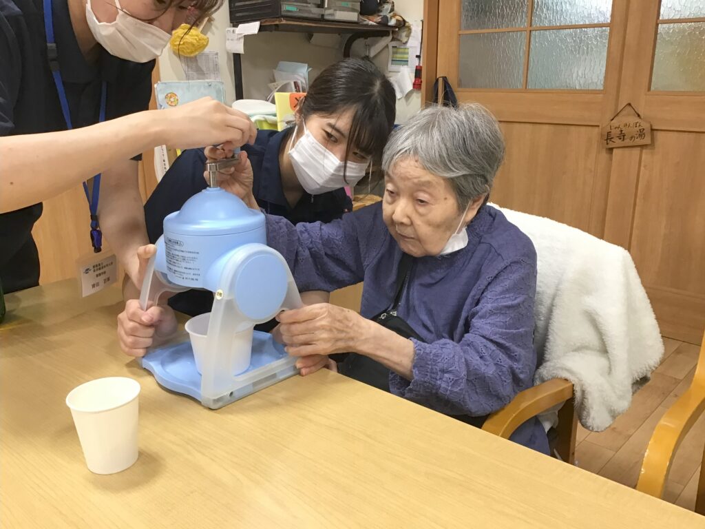 3時のおやつはかき氷!イチゴ、メロン、レモンからお好きな物を選んでいただきました。