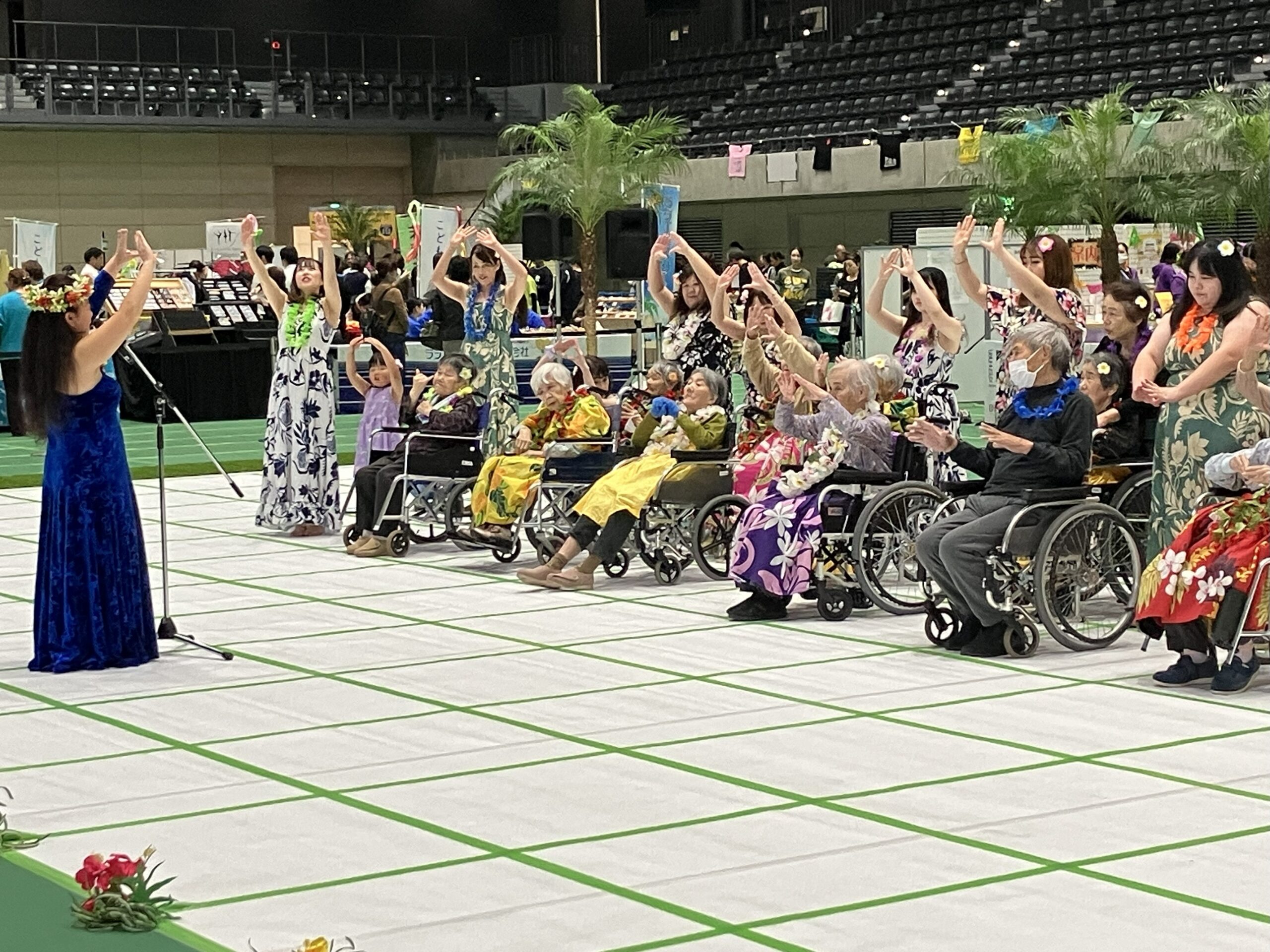 障がいがあってもなくてもご家族様も一緒に楽しめるイベントで、群馬町とあいあいえすも参加させていただき、ステージでアロハなリズム体操を発表しました!
